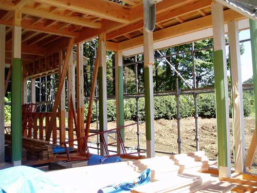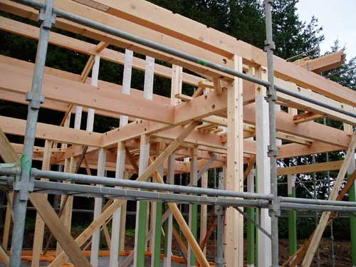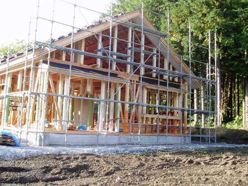 基礎工事の建築例1から引き続き、棟上から屋根完成までの様子です。風土に合った建材を使う事で、長く暮らせる家を目指しています。木の香りのする住宅になるよう、丁寧に造っていきます。