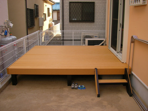 一戸建て住宅 これまでに守屋材木店が手がけた住宅の一部です。施主様のご要望、ご意見を伺い、一級建築士が設計を手がけ、施工しております。モダン住宅以外にも、木材の風合いを生かし土間などを広く取った純和風住宅も手がけております。 施主様のご希望によって、使い勝手の良いこのようなウッドデッキも取り付けることが出来ます。新建材の登場で腐食に強い丈夫なウッドデッキも可能になりました。